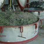 Eu já estou habituado com um aparelho de Clevenger. Mas a planta que utilizo possui baixo rendimento. Além disso, há um problema com o design do aparelho. O óleo líquido cai pela mesma abertura por onde entra o vapor. O ideal seria um em que o vapor entrasse por cima.