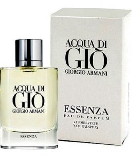 A fragrância se abre com as tonalidades cintilantes de cascalone (molécula que lembra o frescor de águas claras), bergamota e casca de pomelo. O coração revela o paradisone e seu efeito floral/fresco, misturado ao absoluto de jasmim, ao manjericão e a sálvia. O fundo alia o patchouli, cedro Atlas, vetiver e ambroxan. Acqua di Gio Essenza é descrito pela marca como uma água de perfume carnal, intensa e sensual. Perfumista: Alberto Morillas, Firmenich.